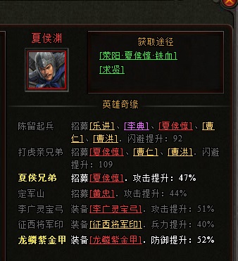 除了夏侯渊以外,夏侯惇也是非常给力的武将,基本对于非R或小R来说,夏侯惇可以和夏侯渊一起过渡到80级,一个闪避流,一个暴击流,两者的配合会发挥出更强悍的战斗作用!